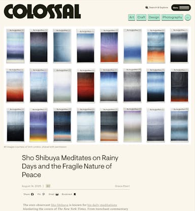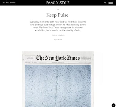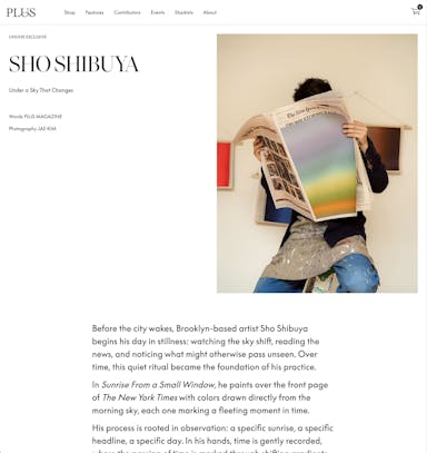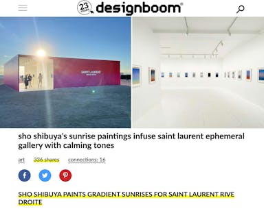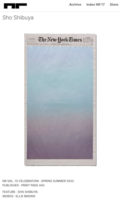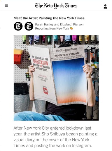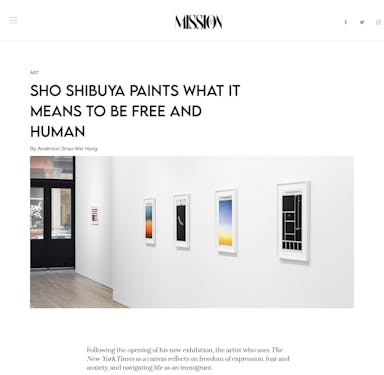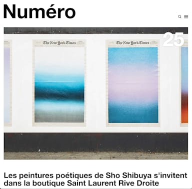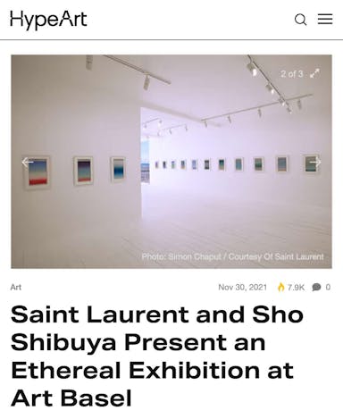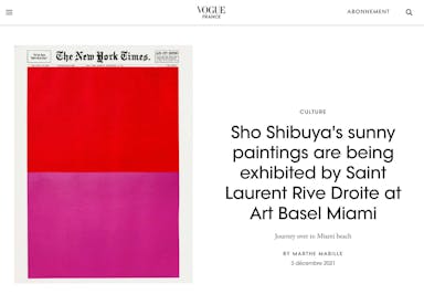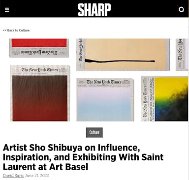 — Sho Shibuya is a Japanese artist living in Brooklyn, New York. His work is primarily concerned with exploring the concept of time and creating a visual, emotional record, and the paintings have been exhibited at the Triennale Milano, at Art Basel Miami Beach in collaboration with Saint Laurent, and the Momu Fashion Museum, among others.