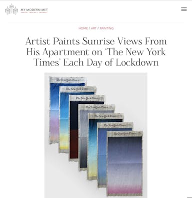 I am very good at continuing things. My painting series began as a simple meditation, born out of a feeling of restlessness and an observation of the contrast between the chaos in the news and the natural calm outside my window, and it evolved from there as I continued to paint and explore my emotions and reactions to the news. In this sense, the project is never finished.