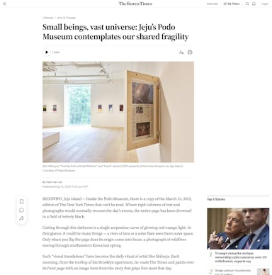 My work is dedicated to capturing everyday moments on conventional materials. In the pandemic, seeing a prominent stack of newspapers growing taller in my studio made me think about the compression of my time. Now, I face today’s newspaper, to feel the present.