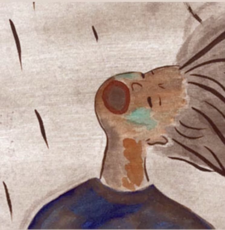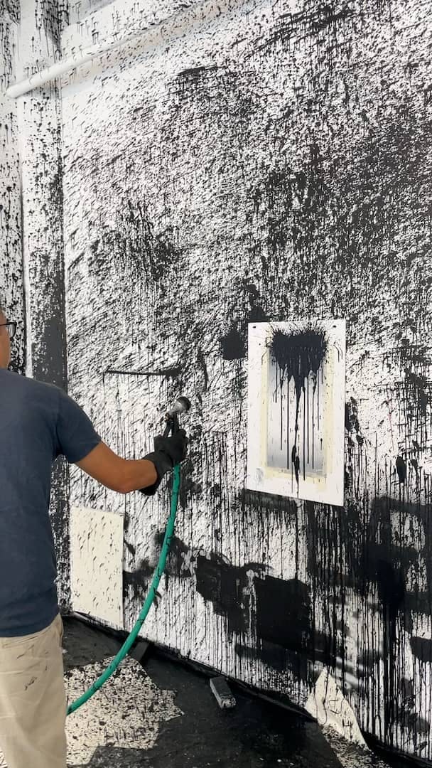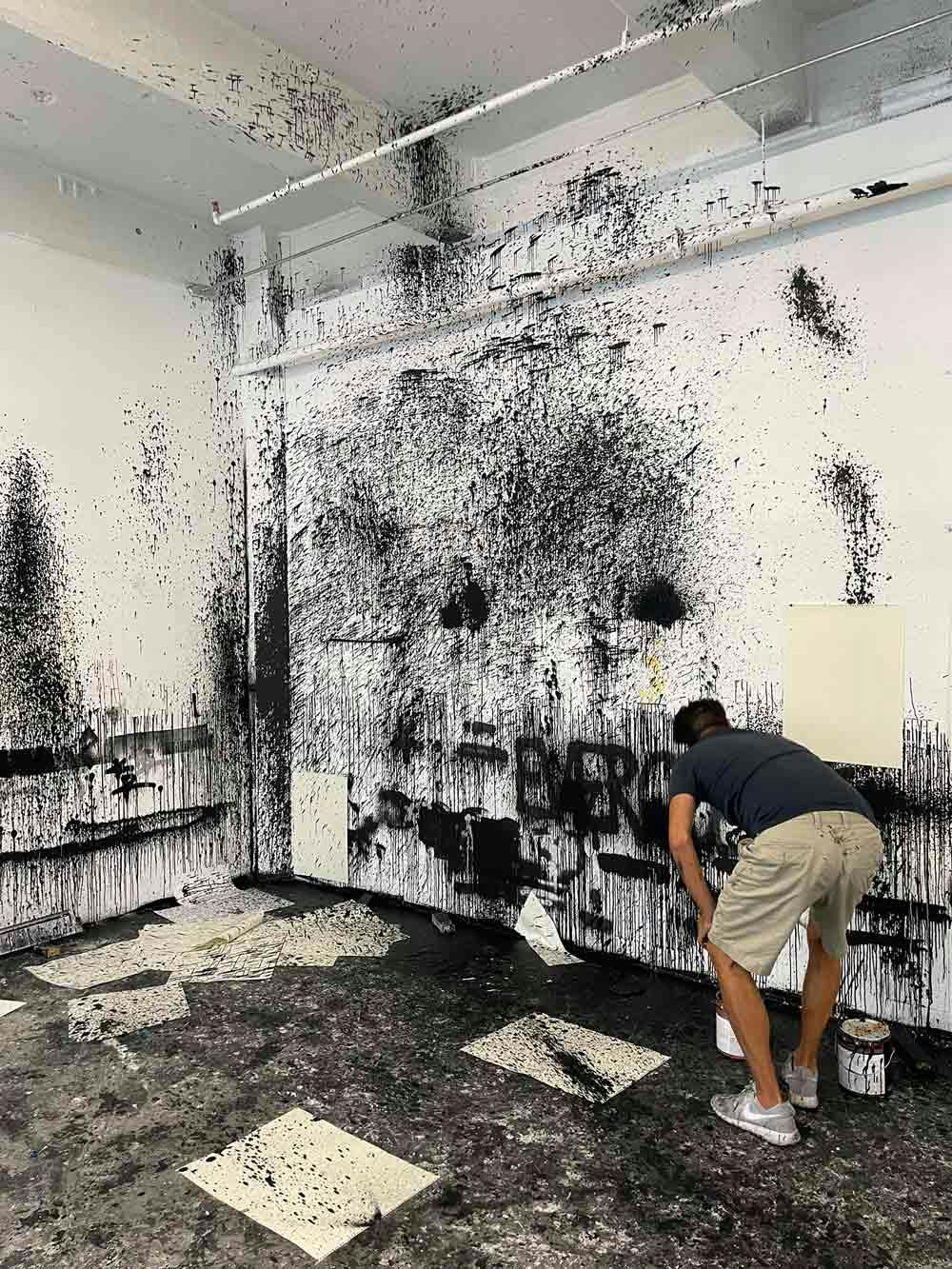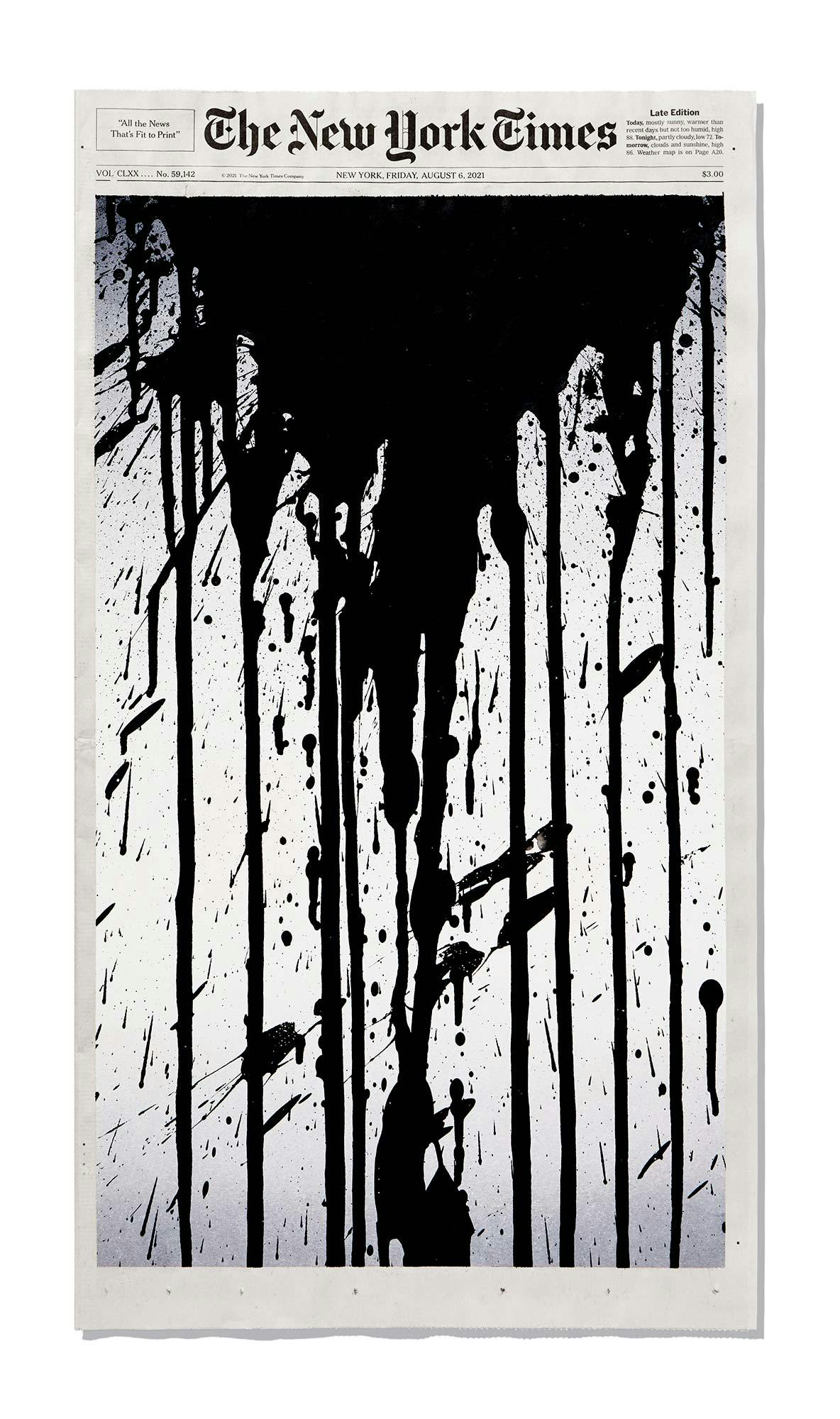 Craig Costello is the New York City-based graffiti artist behind Krink. I collaborated with him to create this painting commemorating the day the United States dropped an atomic bomb on Hiroshima. This horrific act of violence instantly killed more than 80,000 people and the residual radiation — in particular, the poisonous black rain that’s depicted in the painting — would go on to kill many, many more. It is a reminder and a warning that humanity must never turn to nuclear weapons ever again.