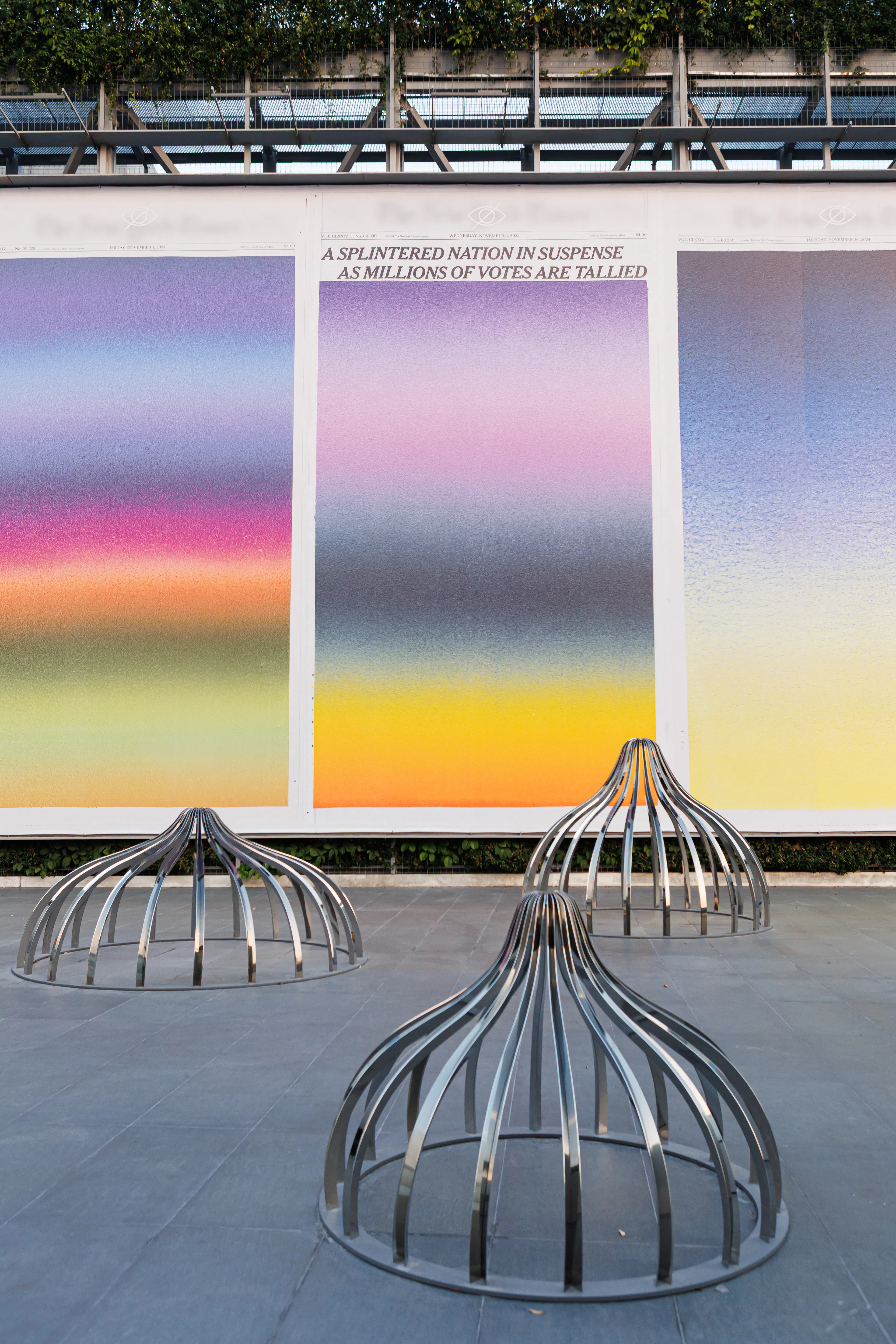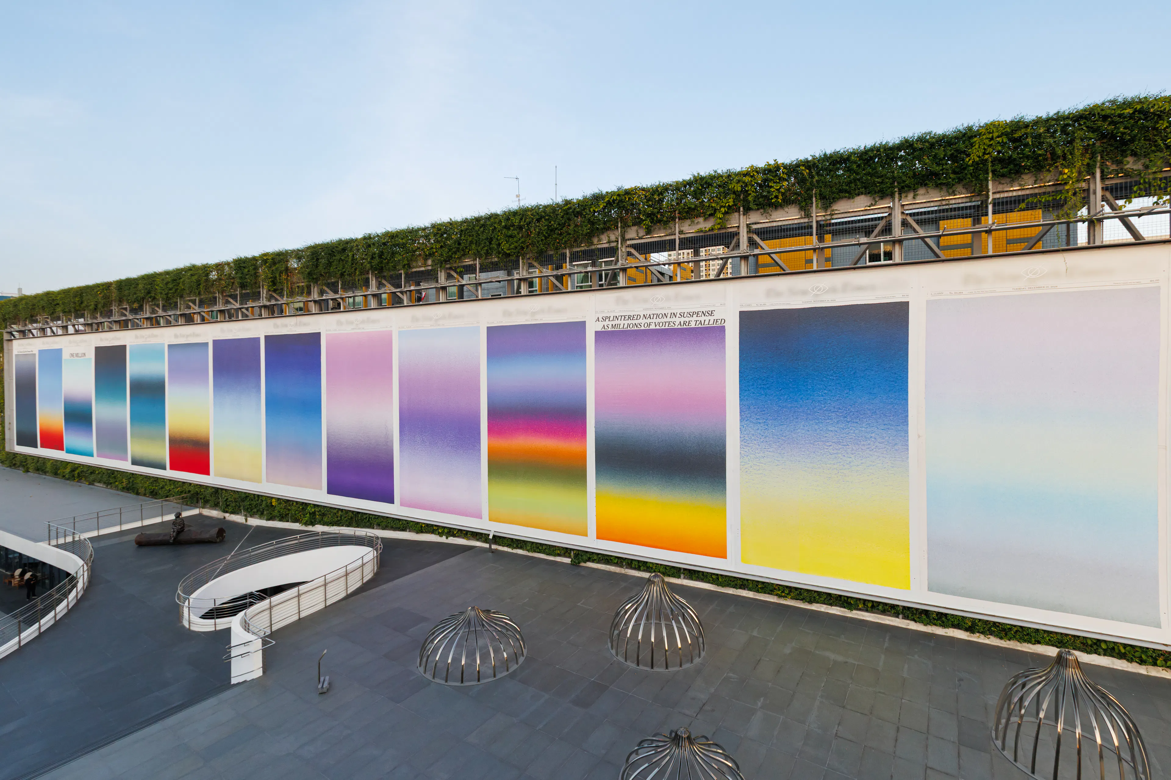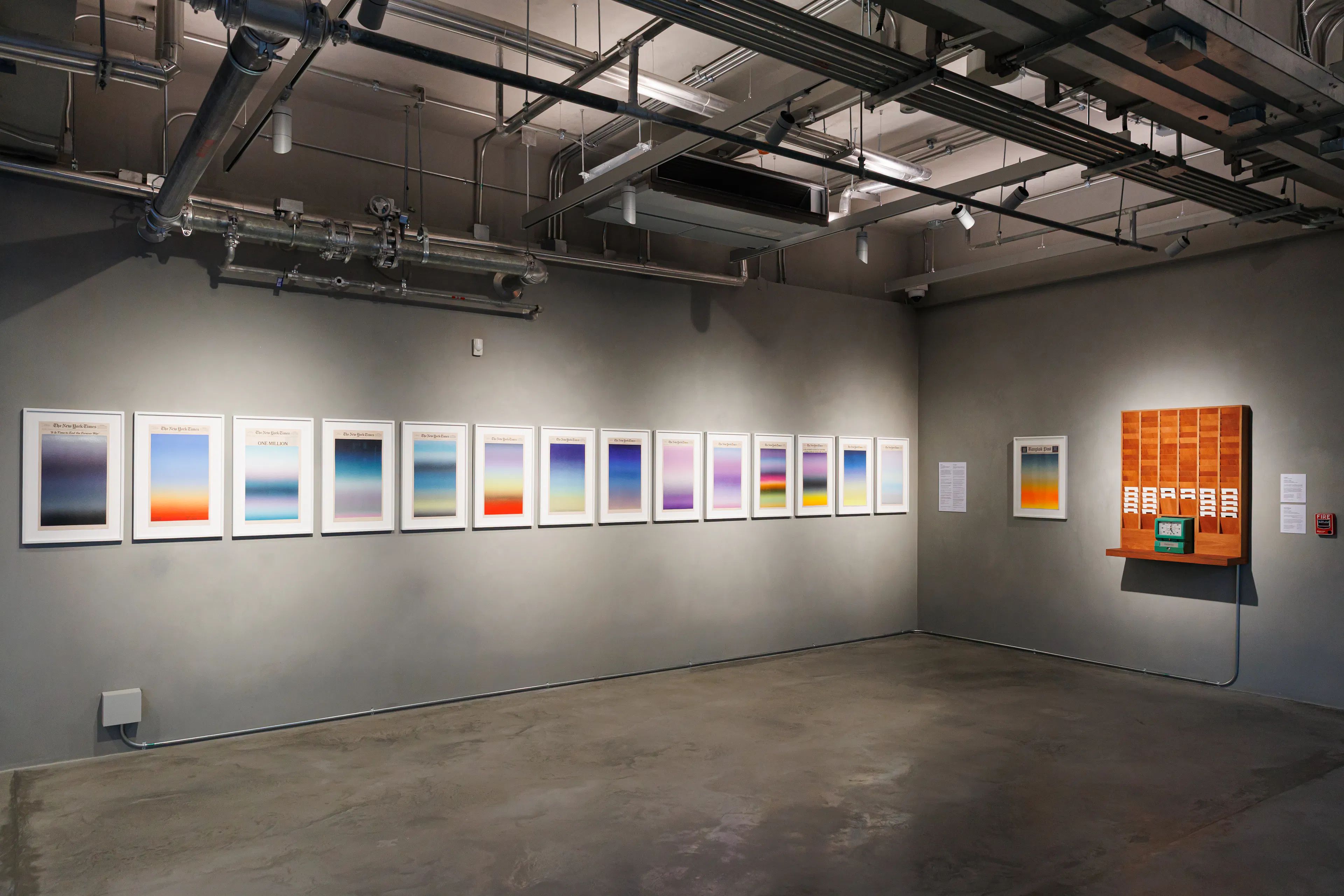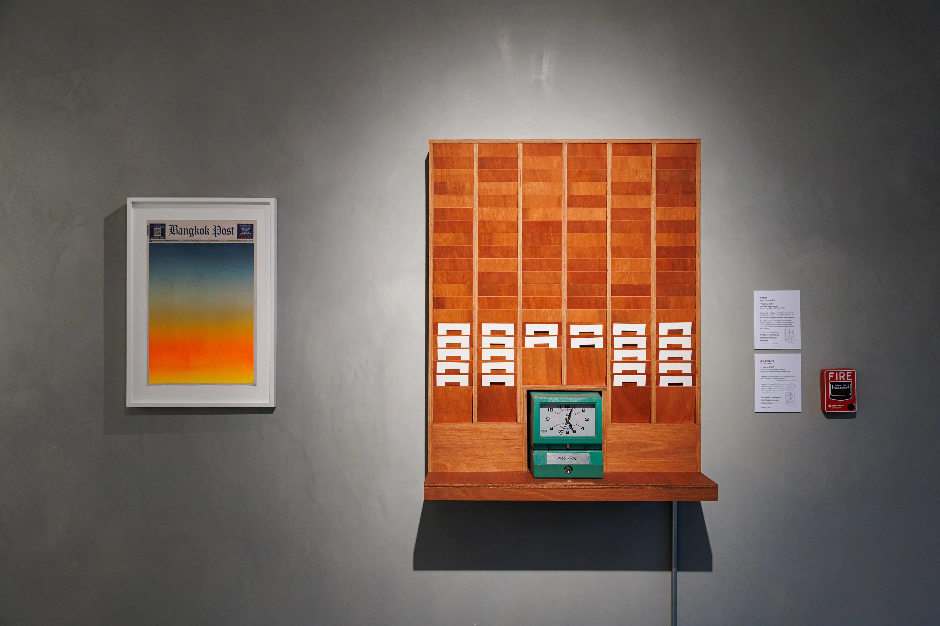 Inside the gallery shows the original artwork of paintings that were displayed outside the billboard, at the end, I painted the opening date of the sunrise on the Bangkok post and siplay there, and next one is the punchcard machine called “Present”, a punchcard machine and create a special experience, inviting guests to create their own memory of the exhibit. The card is a small artwork that guests can keep to preserve the memory. Each guest will pick up a card as they reach the ‘present day’ part of the gallery and insert it into the machine to be punched with the date and time: their piece of the timeline, a record of their memory of the exhibit. The comcept resonate the Bil Keane’s quote, “Yesterday is history and tomorrow is mystery, today is a gift that’s why it’s called present ”