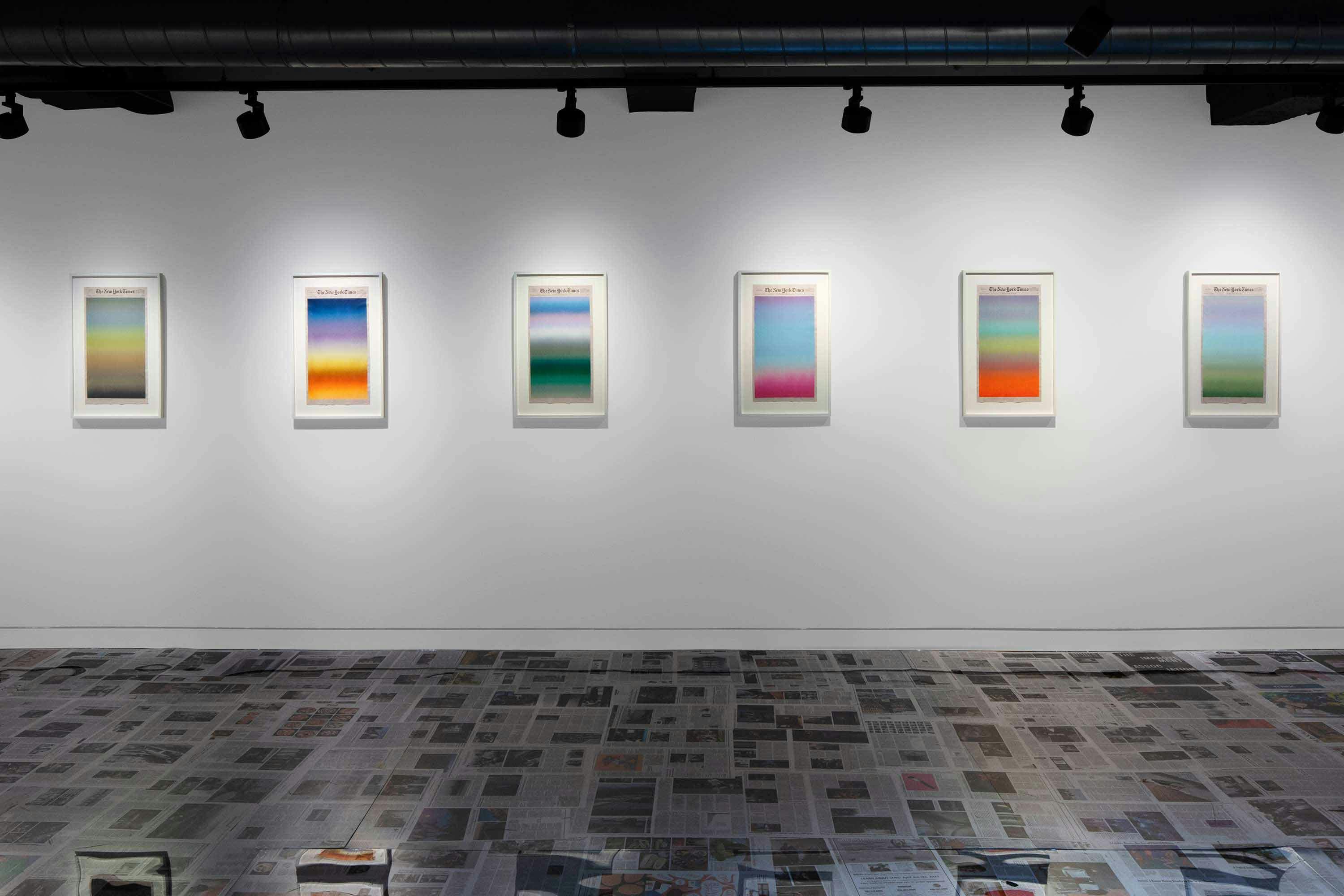 Using the New York Times as a canvas, he paints the image of a sunrise on each newspaper’s front cover. Each of these artworks represents a single day, aiming to demonstrate our varying perceptions of different timeframes; a single day can feel long, or monumental, or it can simply feel unremarkable. Despite the inherently divisive nature of front page news, Month offers the unifying motif of a sunrise to keep our daily lives in perspective.