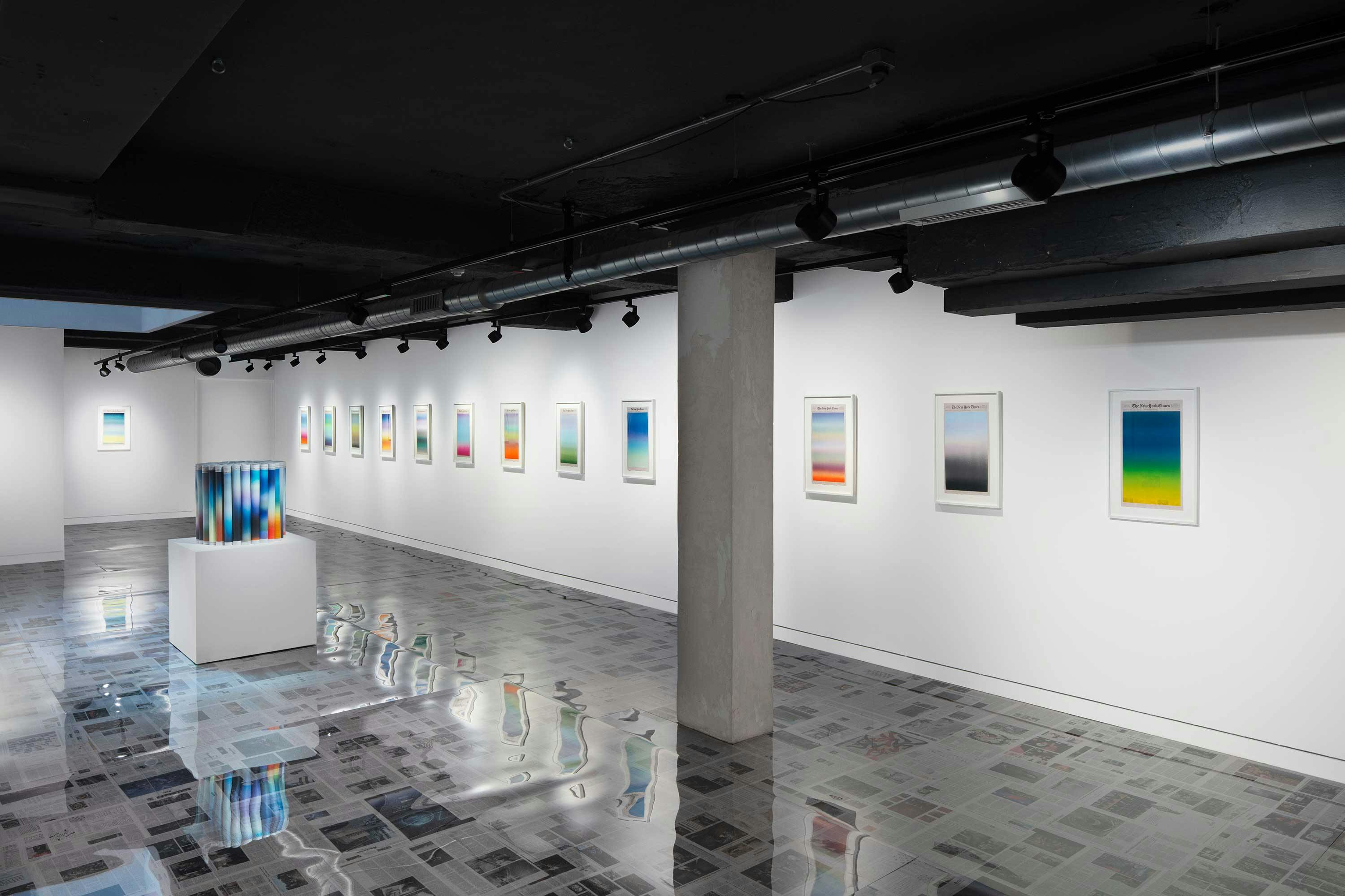 Month presents a series of artworks from the “post-COVID” era. With this body of work, he has selected sunrises from clear days in New York City, examining the process and experience of time. Shibuya has been creating these artworks since April 2020. For him, the tranquil sunrise presented a contrast to the chaos in the news. Cities were in lockdown, but the rise and fall of the sun outside his window persevered as if nothing had changed. In fact, in Shibuya’s eyes, everything seemed quieter and more peaceful than usual. For the artist, these continuing movements of nature helped to reset his mind and encouraged him to appreciate everyday moments. More recently, when New York City was blanketed in thick orange smoke from wildfires in Canada, humankind was offered another reminder not to take the view of the sunrise for granted. For Shibuya, these events reinforced the importance of capturing the sun each morning.